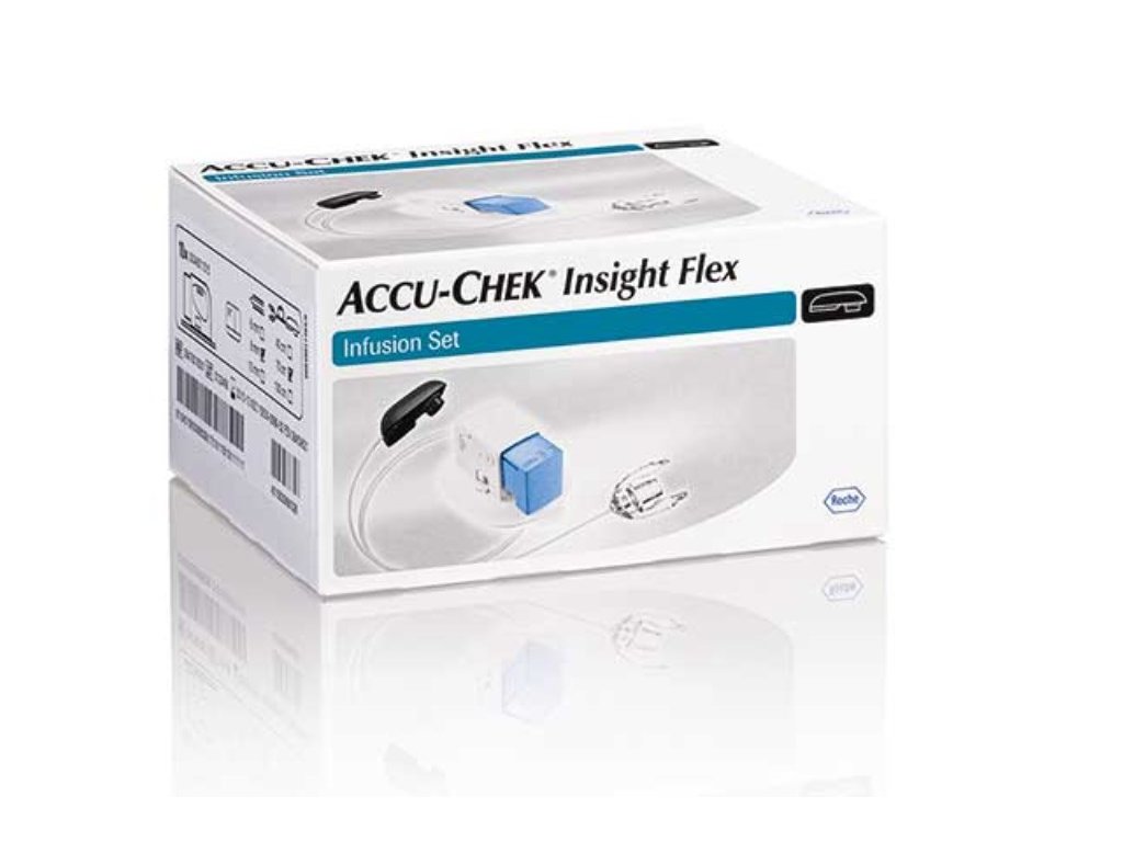 Accu-Chek® Insight Flex je inovovaný teflonový infuzní set s kolmým zaváděním. Nabízí možnost ručního anebo bezpečného automatizovaného zavádění pro uživatele preferující minimální kontakt s jehlou nebo pro ty, kteří si chtějí set zavádět do hůře dostupných míst.